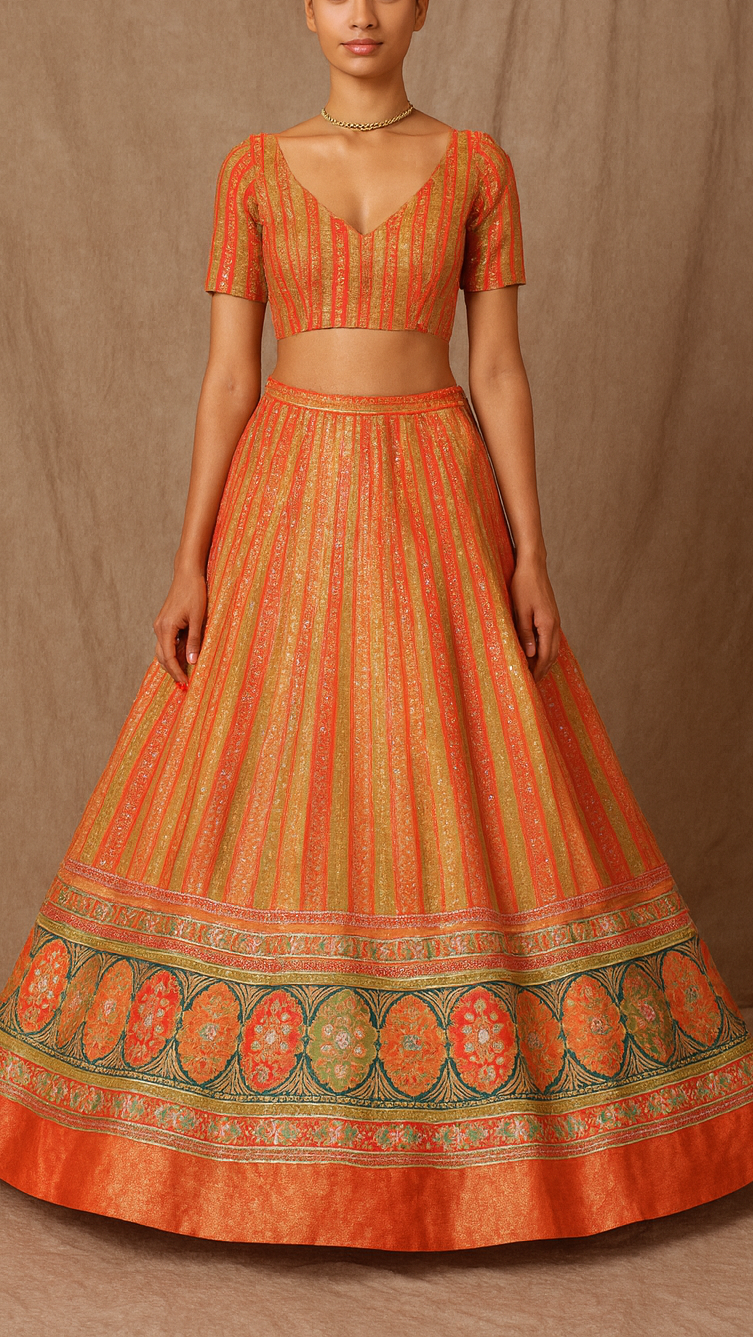 Ideal for sarees, lehengas, gowns, and dupattas, this fabric beautifully blends cultural artistry with contemporary elegance. The combination of print, zari, and sequins with a bordered finish makes it suitable for weddings, festive occasions, and designer outfits.