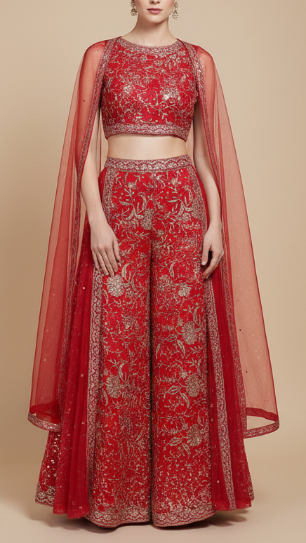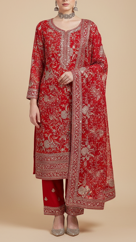 | Fabric Name | Red Georgette Fabric With All Over Zari And Sequins Work |