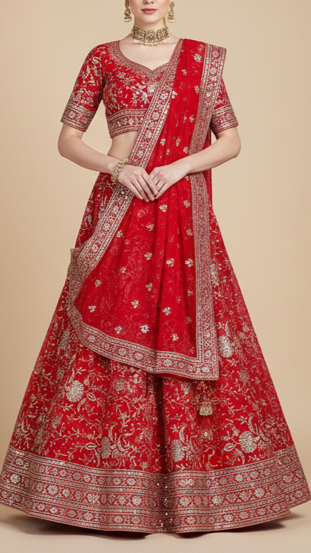 Perfect for sarees, lehengas, gowns, and dupattas, this fabric blends traditional artistry with modern elegance. Its all-over zari and sequins work make it ideal for weddings, receptions, festive occasions, and celebratory wear.