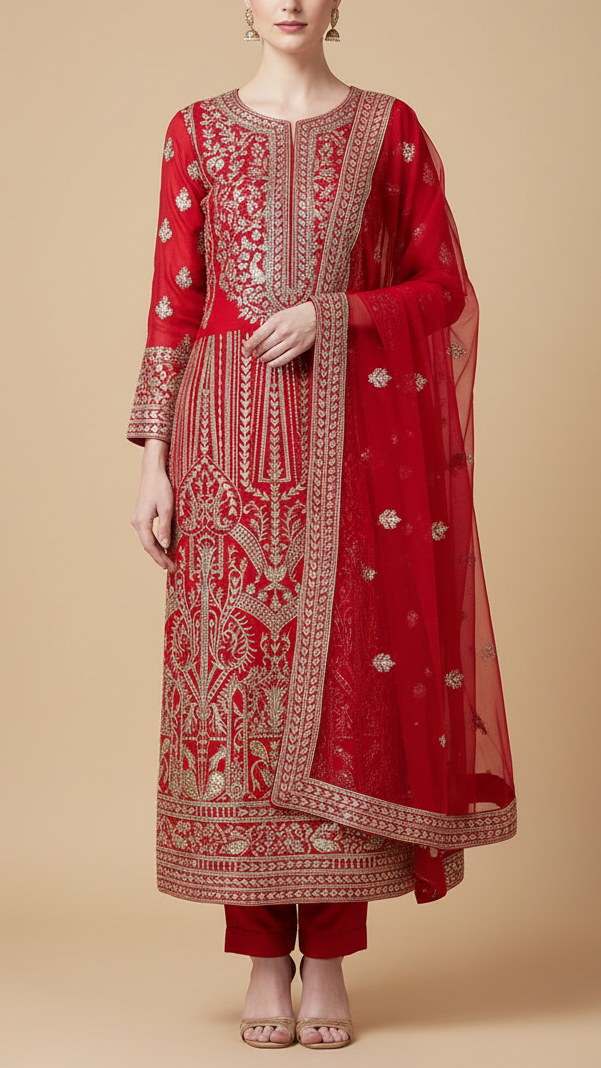 Kareena Kapoor Inspired Edition | Red Embroidered Georgette Unstitched Fabric 19088