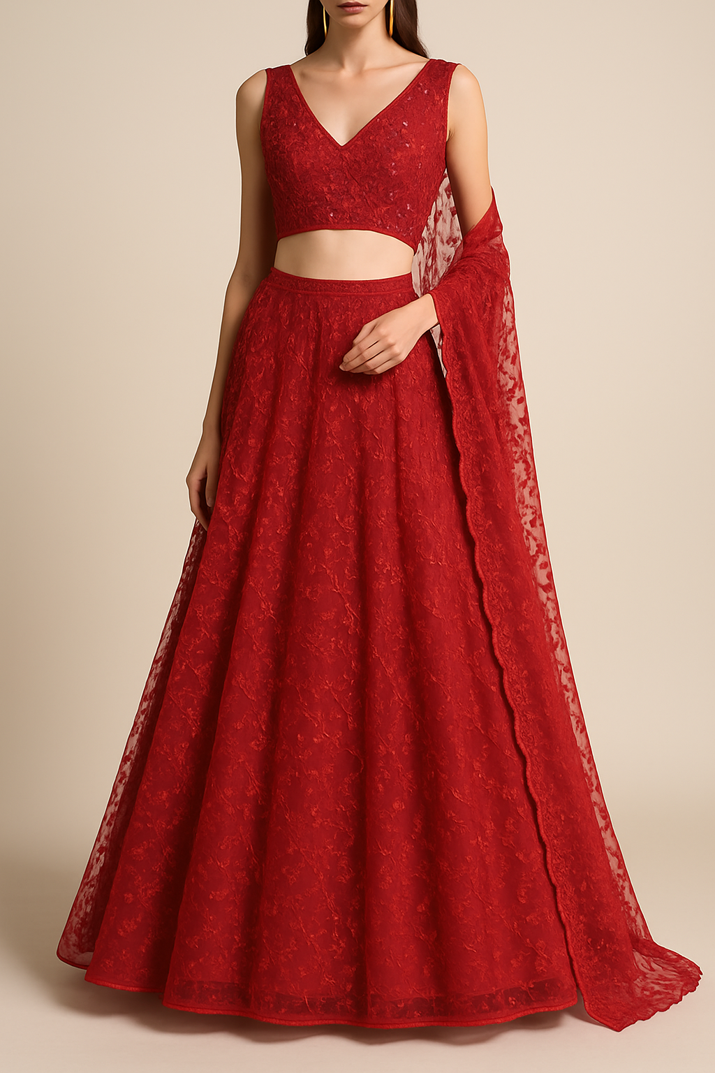 Perfect for lehengas, gowns, sarees, and dupattas, this fabric is recommended for weddings, receptions, and festive occasions where a dazzling, sophisticated, and elegant appearance is desired.
