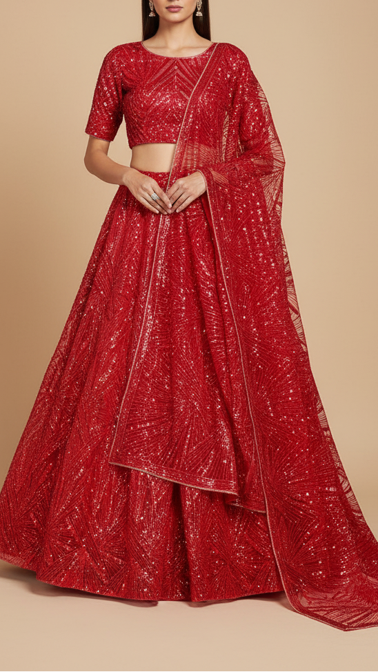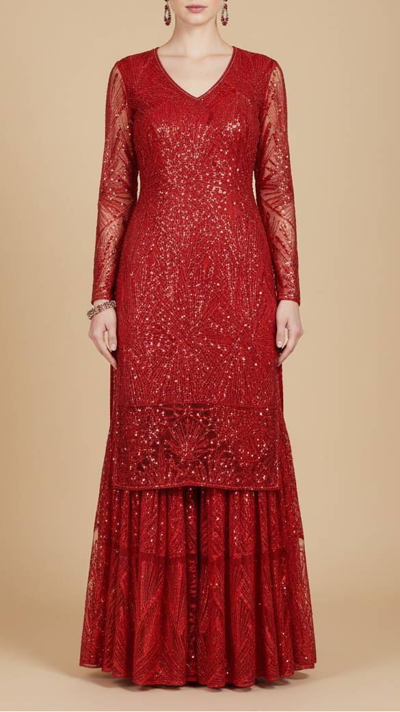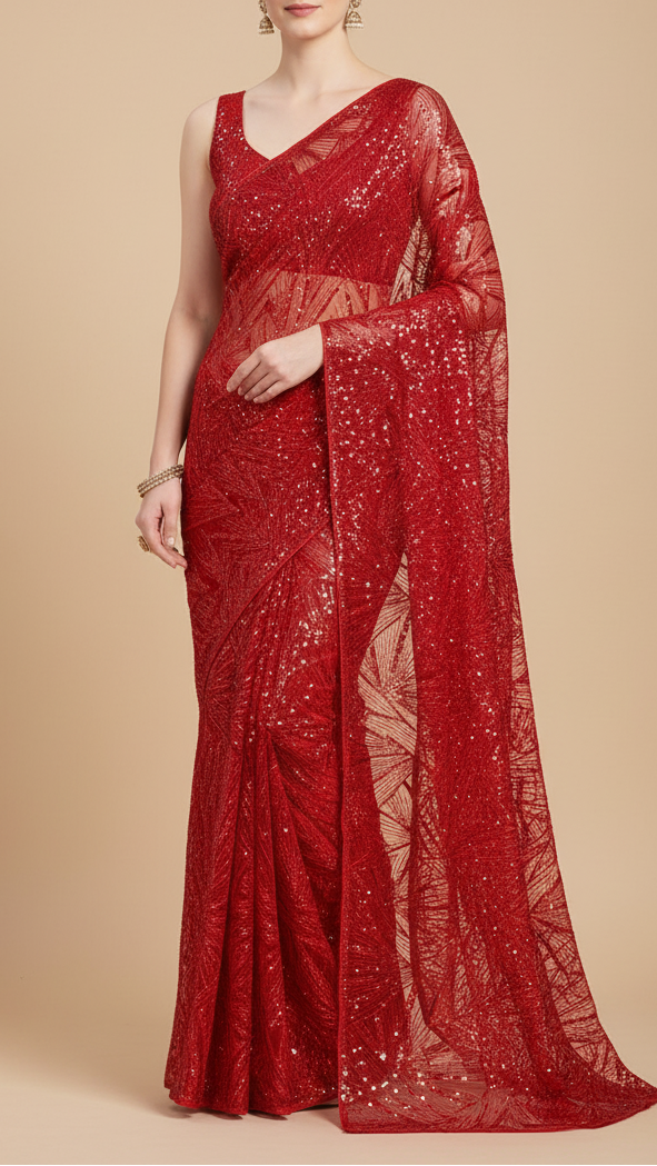 | Fabric Name | Red Imported Net Fabric With Allover Sequins & Bead Work |
