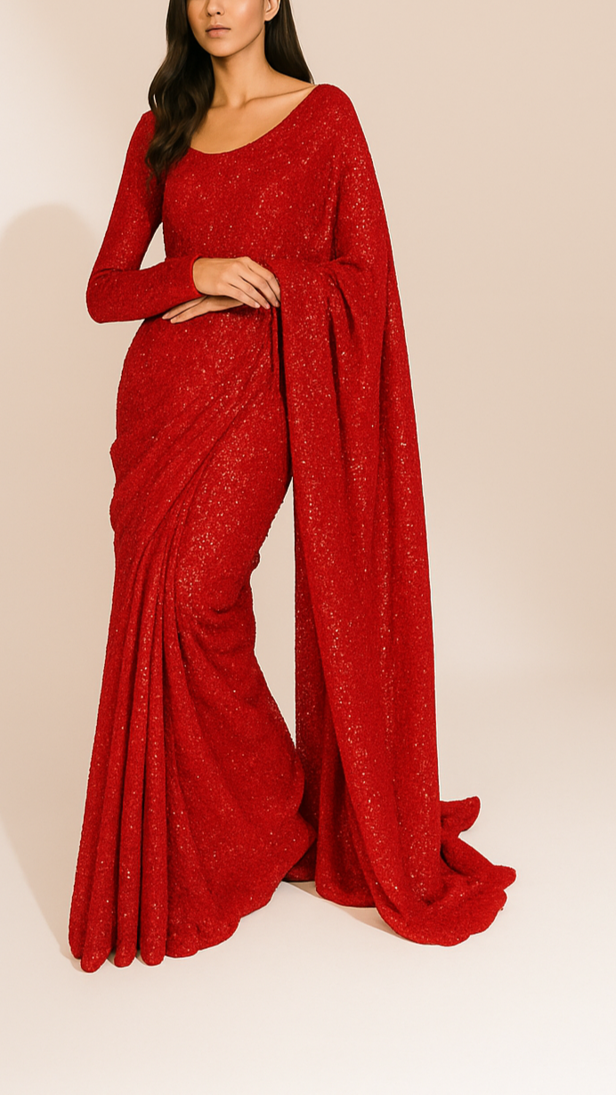 Fabric Name | Red Net Fabric With Allover Sequins Work |