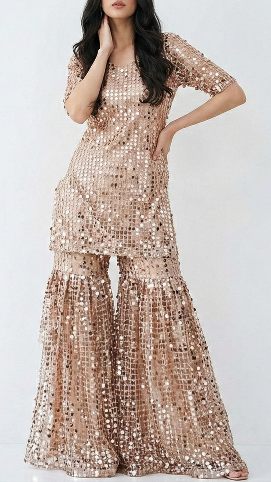 Should you require further assistance, please contact our dedicated customer care team. Provide them with your body dimensions and a sample image of the desired attire. Our experts will ensure you receive precise guidance tailored to your needs, reflecting our commitment to exceptional service and luxury.