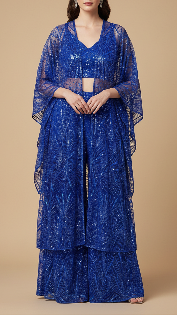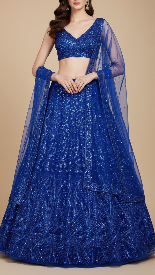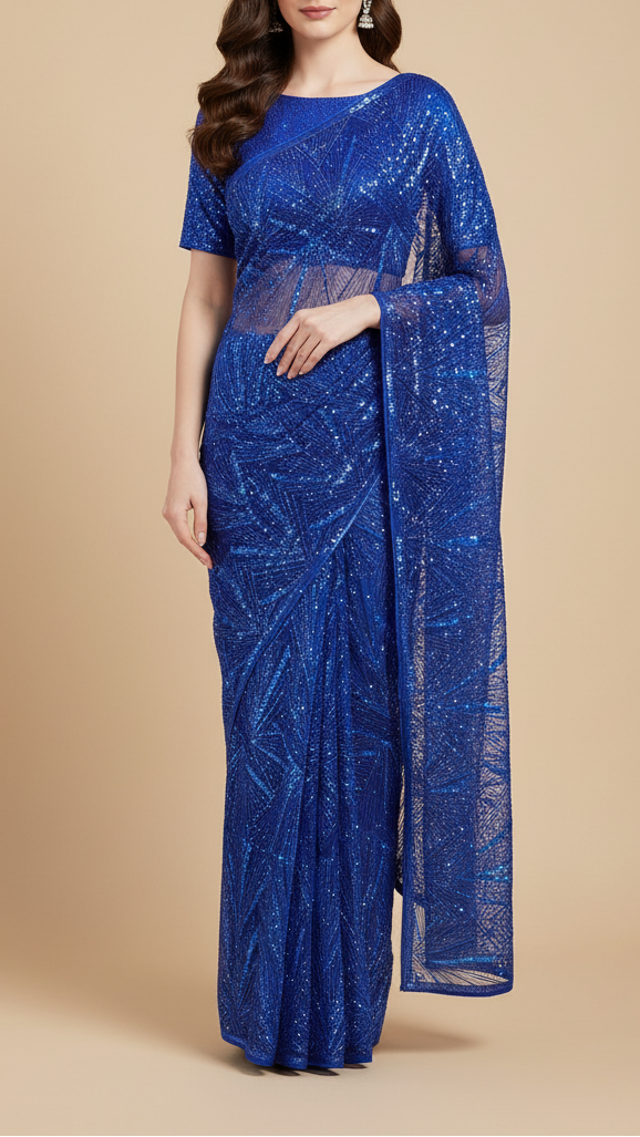 | Fabric Name | Royal Blue Imported Net Fabric With Allover Sequins & Bead Work |