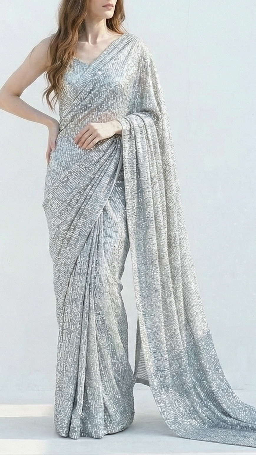 | Fabric Name | Silver Net Fabric With All Over Sequins Work |
