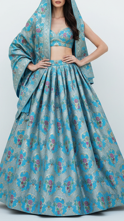 | Fabric Name | Sky Blue Pure Banarasi Brocade Fabric With All Over Thread And Zari Handloom |