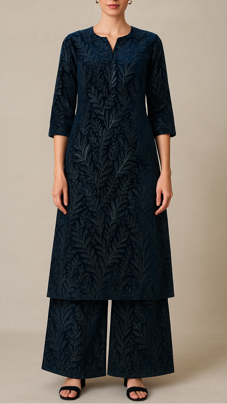 | Fabric Name | Teal Blue Velvet Fabric With All Over Thread And Sequins Work |