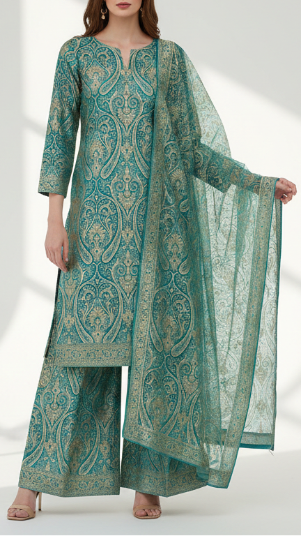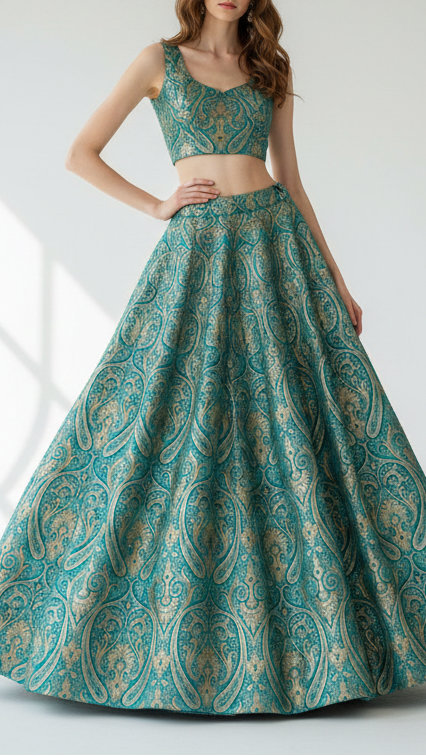 Ideal for lehengas, suits, jackets, and statement panels where richness, warmth, and detailed embellishment are essential for an elegant, premium finish.