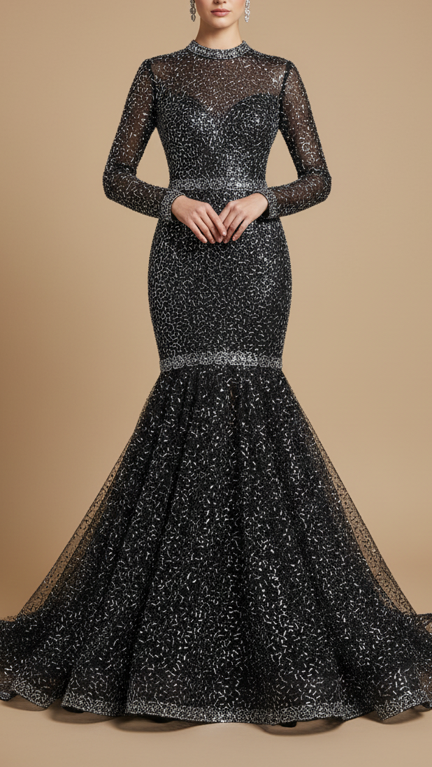 The Noor - Black Net Fabric With Sequins And Faux Katdana Work | 19940