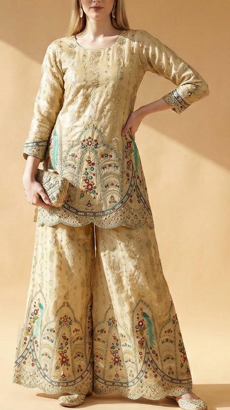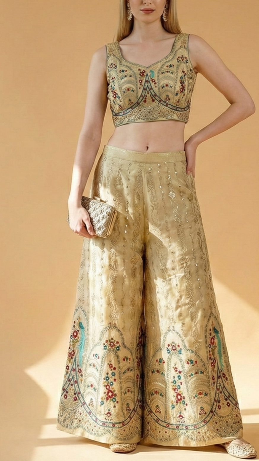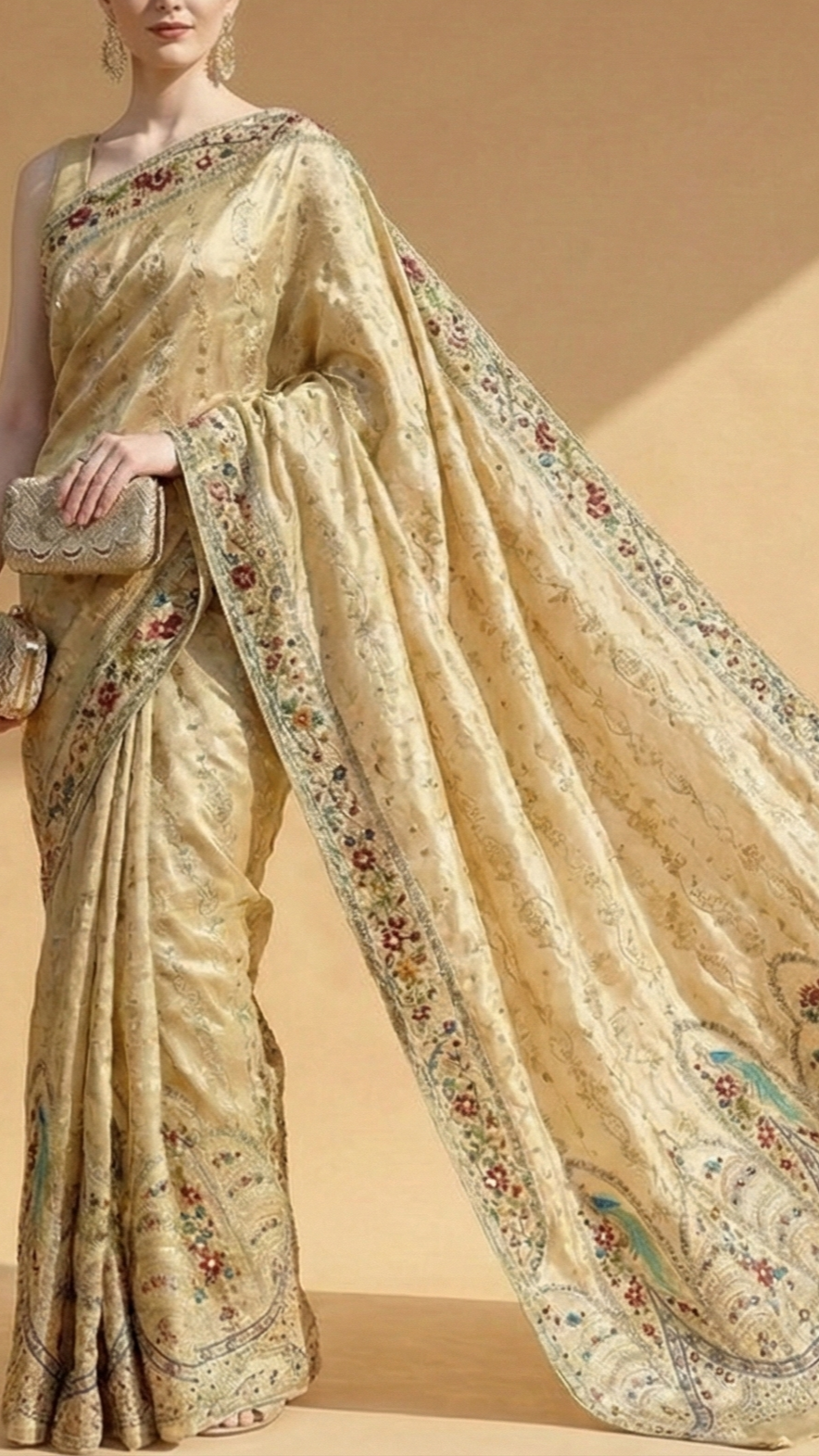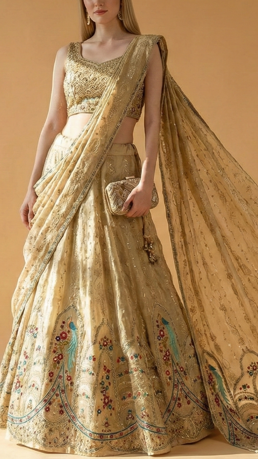 | Fabric Name | Golden Tissue with Zari, Sequins, and Multicolor Threadwork |