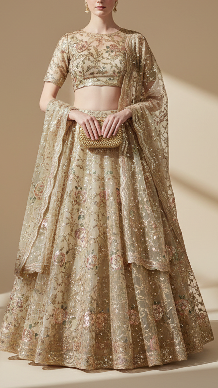 | Fabric Name | Vibrant Multicolor Floral Tissue with Zari & Sequins Embroidery |
