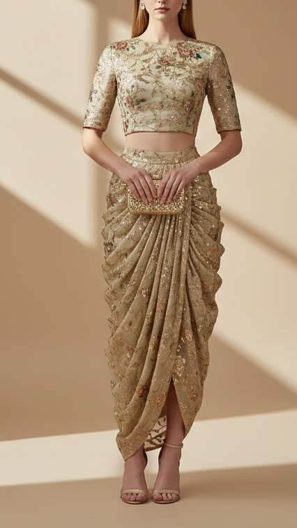 Should you require further assistance, please contact our dedicated customer care team. Provide them with your body dimensions and a sample image of the desired attire. Our experts will ensure you receive precise guidance tailored to your needs, reflecting our commitment to exceptional service and luxury.