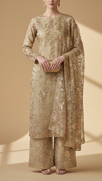 The Noor - Multicolor Tissue Fabric With Zari & Sequins Work | 9501