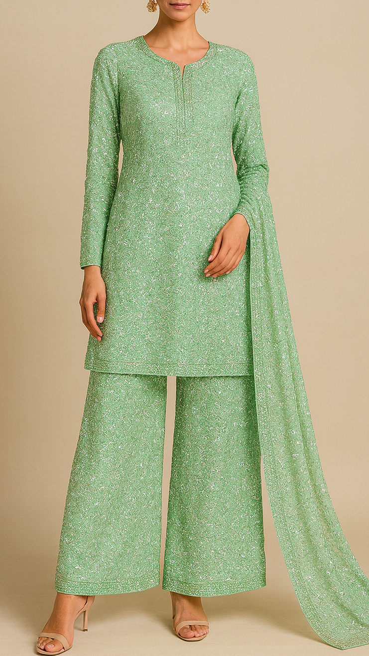 The Noor - Pastel Green Georgette Fabric With Classic Bead And Sequins Work | 16319