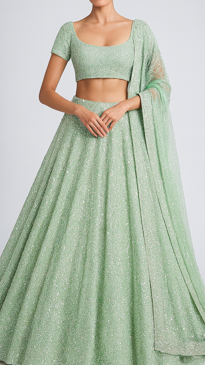 Perfect for sarees, lehengas, gowns, dupattas, shararas, festive outfits, cocktail dresses, bridal trousseau, and couture creations needing a fluid, sparkling, and contemporary appeal.
