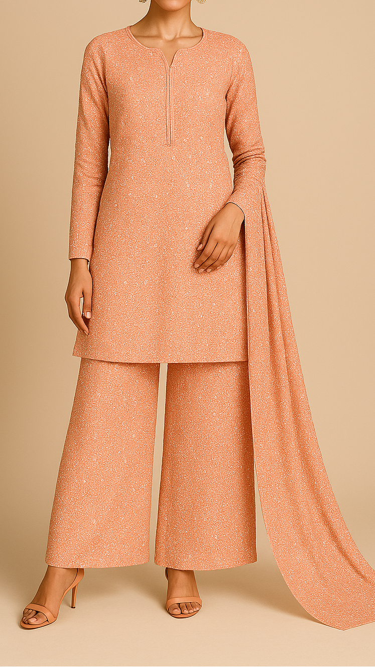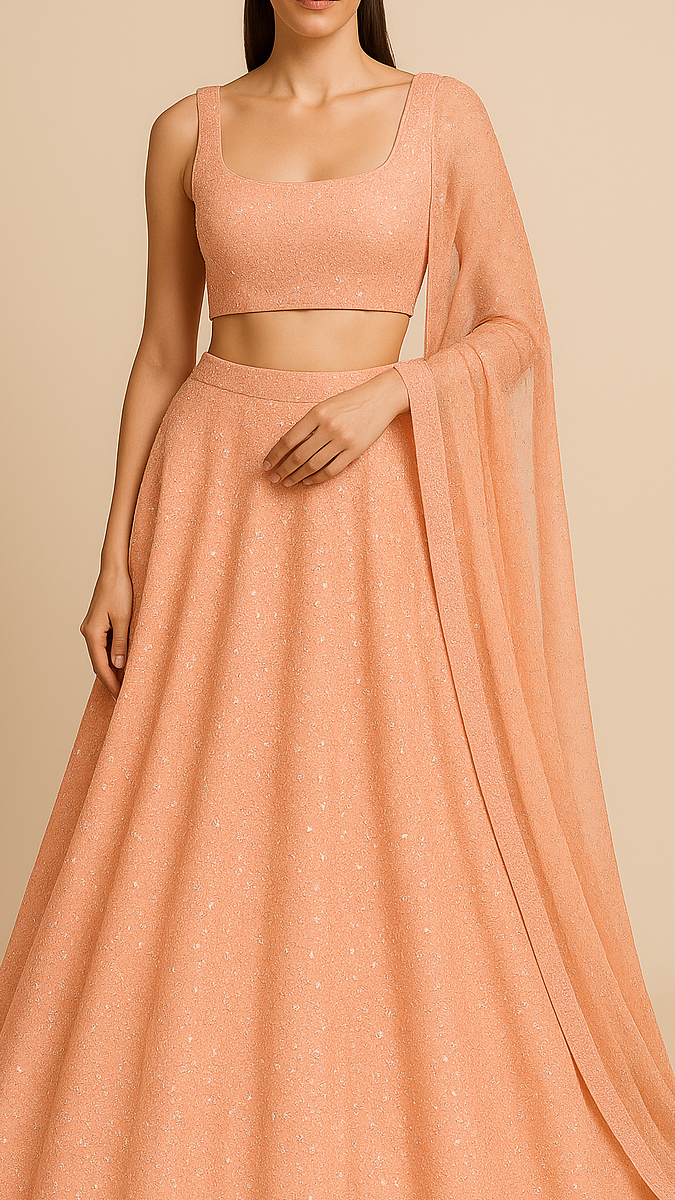 | Fabric Name | Peach Georgette Fabric With All Over Bead And Sequins Work |