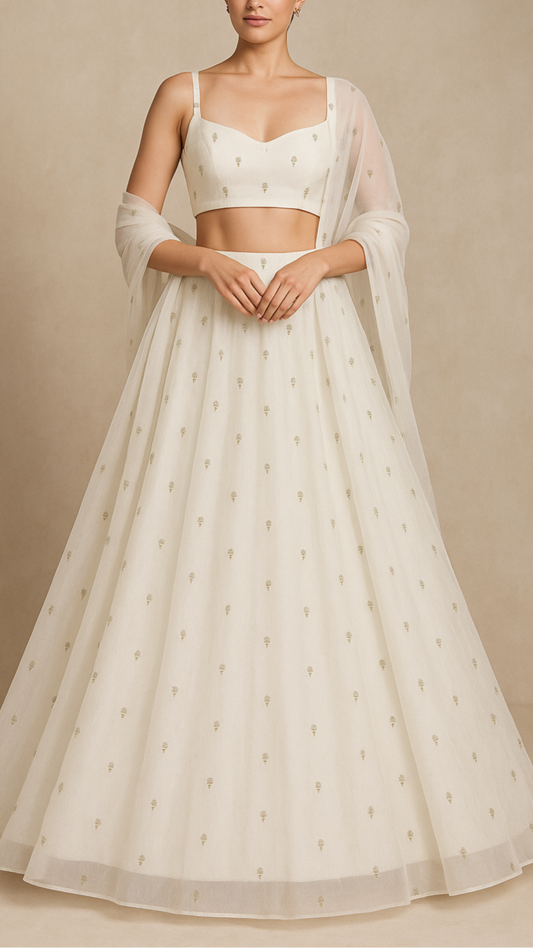 Ideal for sarees, lehengas, gowns, and dupattas, this fabric adds understated glamour to both traditional and modern outfits. The sequins buti detailing makes it suitable for weddings, receptions, festive occasions, and evening wear.