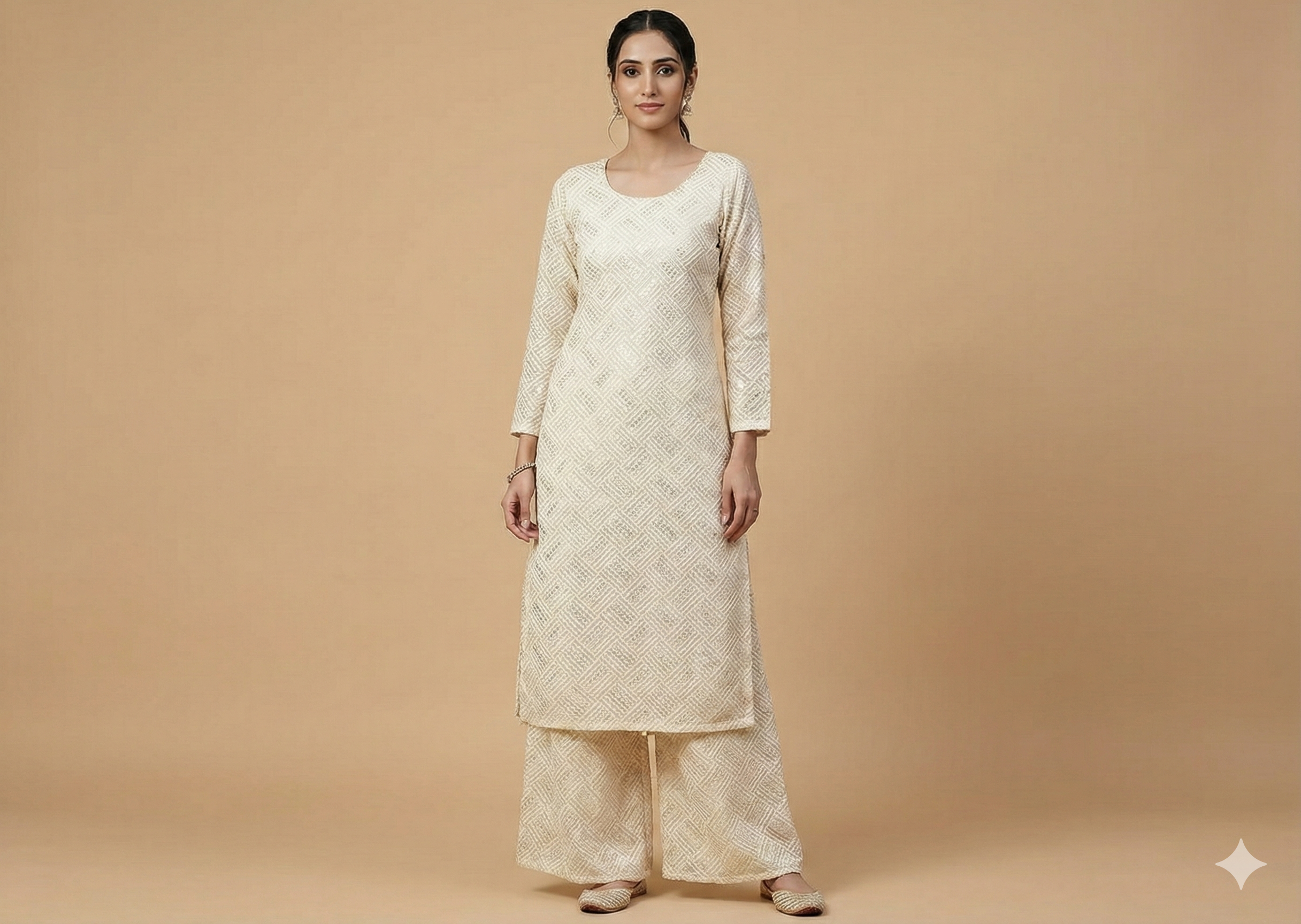 The Noor - White Georgette Fabric with Timeless Thread and Sequins Work | 12885