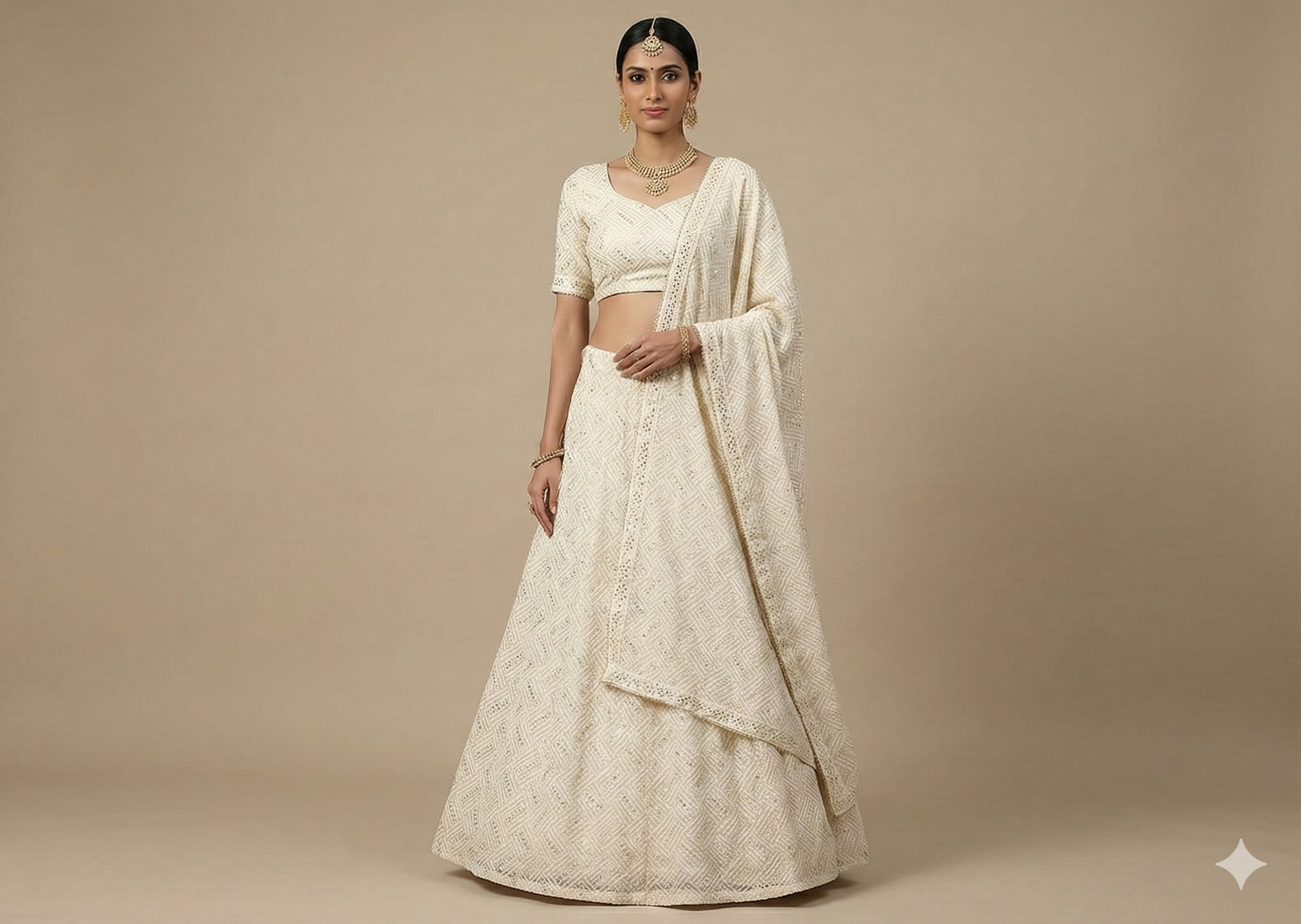 | Fabric Name | Dyeable Georgette White Fabric with Allover Thread and Sequins Work 12885 |