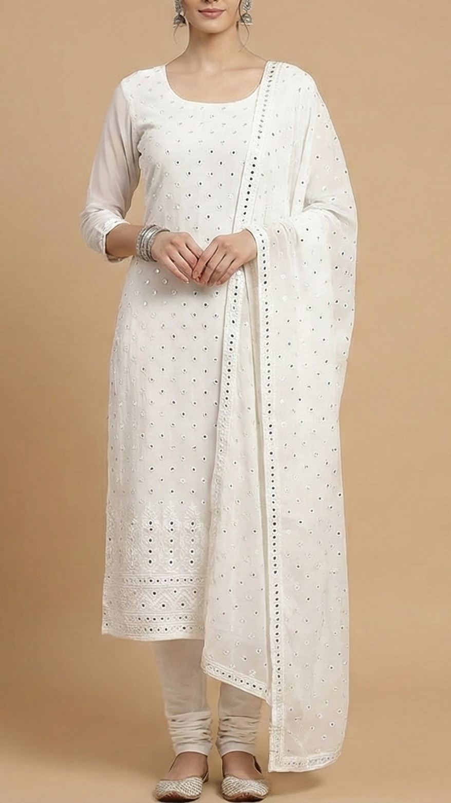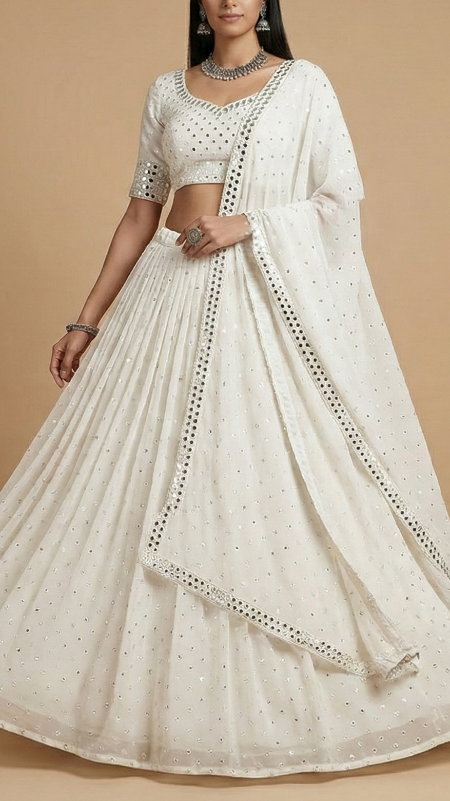 | Fabric Name | Dyeable Georgette Fabric with Allover Thread & Faux Mirror Work |