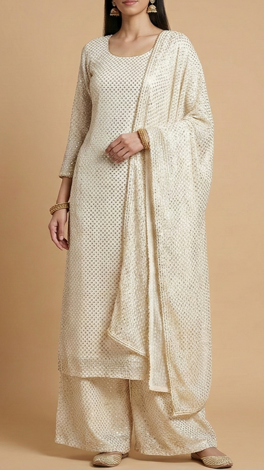 The Noor - White Georgette Fabric with Timeless Thread & Sequin Work | 12423