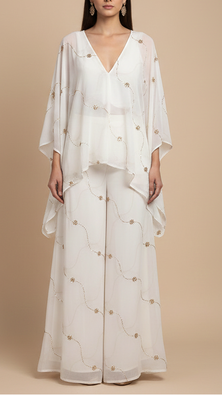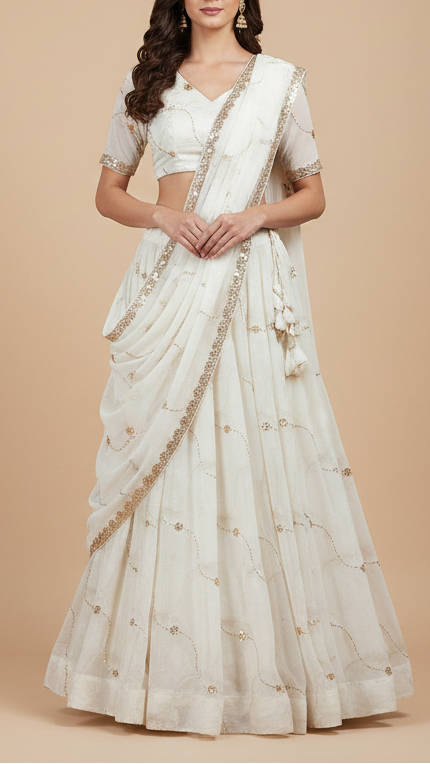 | Fabric Name | Dyeable Georgette White Fabric with All-Over Katdana and Bead Work |