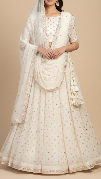 Best suited for dupattas, sarees, lehengas, and evening gowns. It adds a pop of color and shine, making it ideal for wedding functions, receptions, and high-glam fashion looks