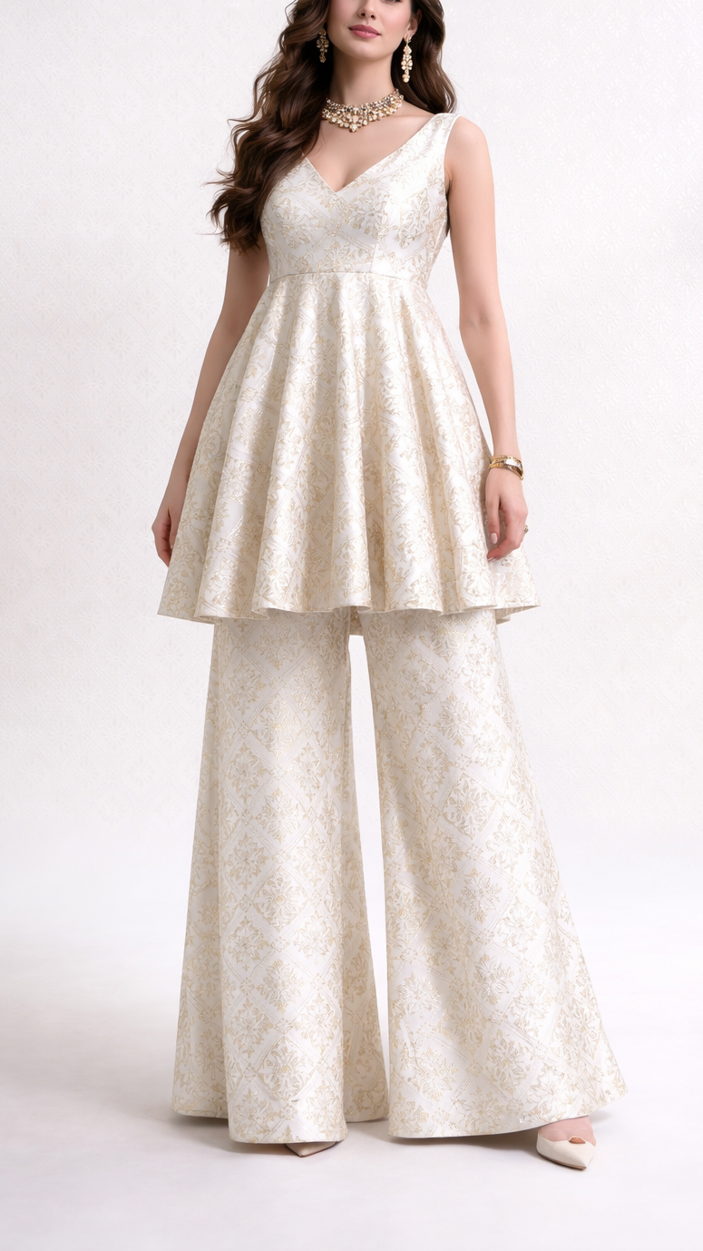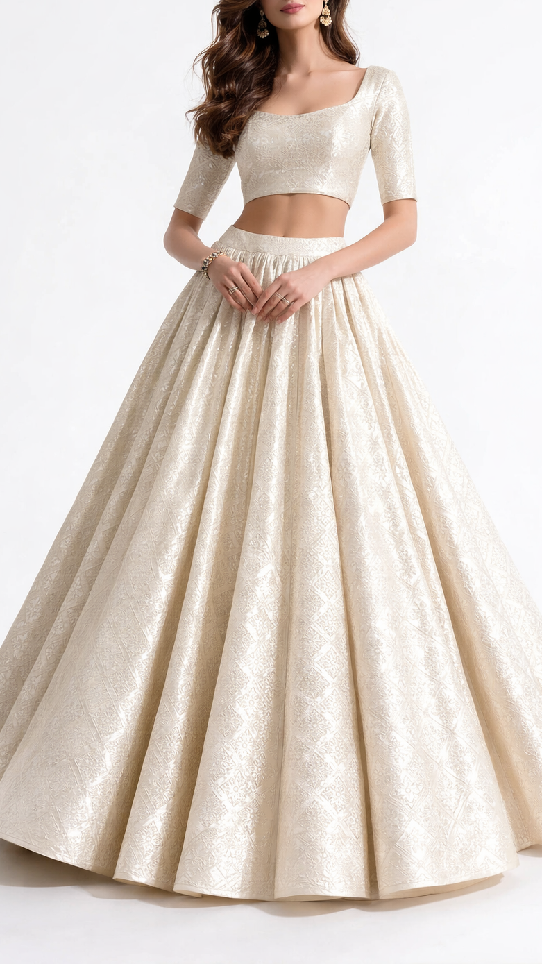 Banarasi brocade lends a regal, timeless charm to sarees, lehengas, anarkalis, sherwanis, blouses, and fusion silhouettes, elevating apparel with its intricate zari shimmer and heritage elegance.