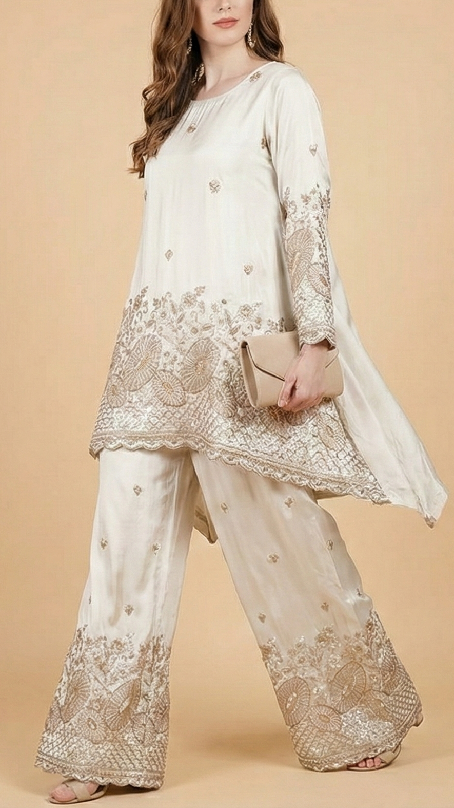 Should you require further assistance, please contact our dedicated customer care team. Provide them with your body dimensions and a sample image of the desired attire. Our experts will ensure you receive precise guidance tailored to your needs, reflecting our commitment to exceptional service and luxury.