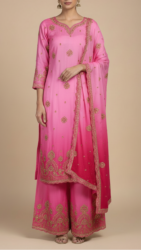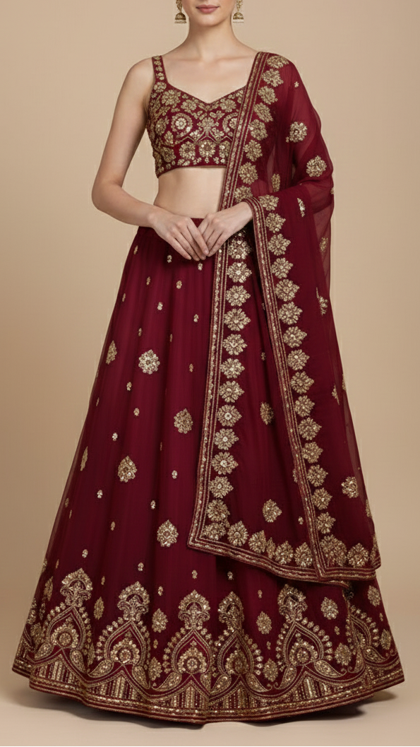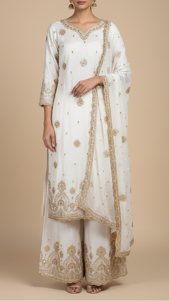 Perfect to pair with silk, georgette, or brocade suits, lehengas, and anarkalis. The intricate zari and gota patti detailing make it ideal for weddings, festive occasions, and traditional celebrations, offering a royal, radiant, and timeless appeal.