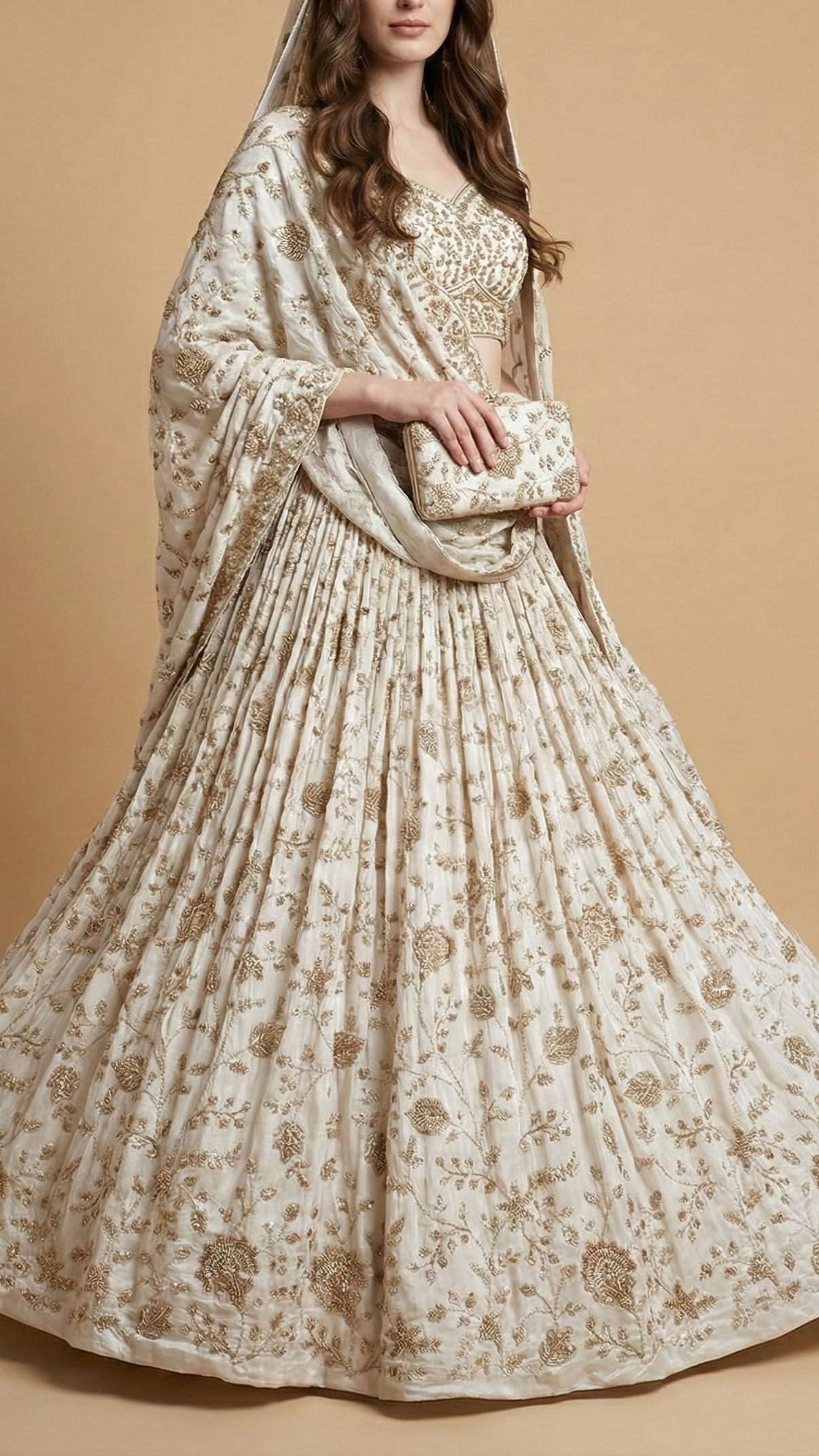 Perfect to pair with silk, georgette, or brocade suits, lehengas, and anarkalis. The intricate zari and gota patti detailing make it ideal for weddings, festive occasions, and traditional celebrations, offering a royal, radiant, and timeless appeal.