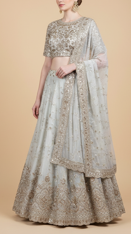 Ideal for sarees, lehengas, gowns, and dupattas, this fabric suits both modern and traditional outfits. Its richly embellished design makes it perfect for weddings, receptions, and festive occasions, ensuring timeless elegance and glamour.