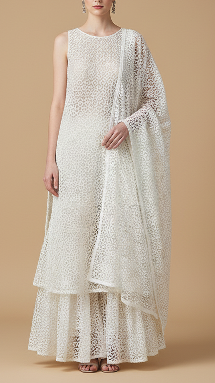 | Fabric Name | White Crochet Fabric With Abstract Pattern Of White Thread |