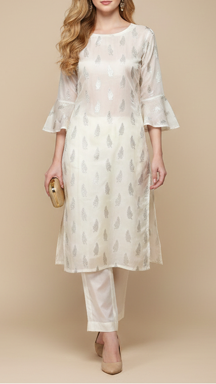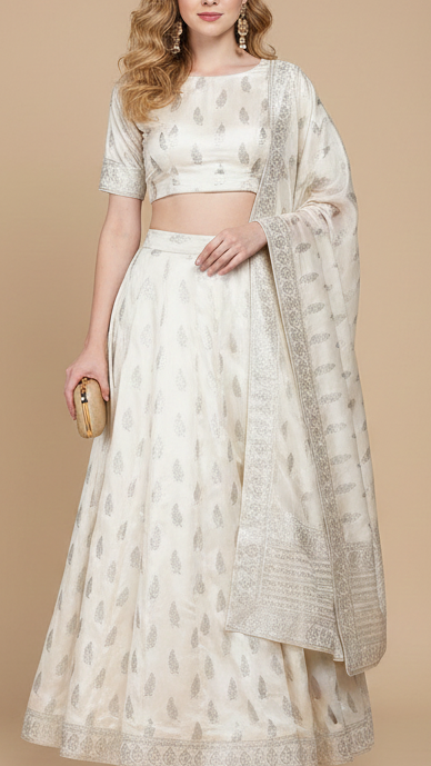| Fabric Name | White Dyeable Chanderi Fabric With All Over Leaf Buti Of Silver Zari Handloom |