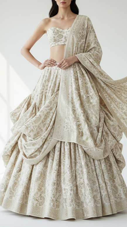 Perfect for lehenga, sarees, anarkalis, jackets, ethinic jumpsuits, etc. The rich look of this fabric is ideal for festive outfits, wedding attire & traditional wear.