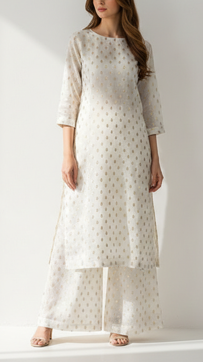 | Fabric Name | White Dyeable Chanderi Fabric With All Over Zari Handloom |