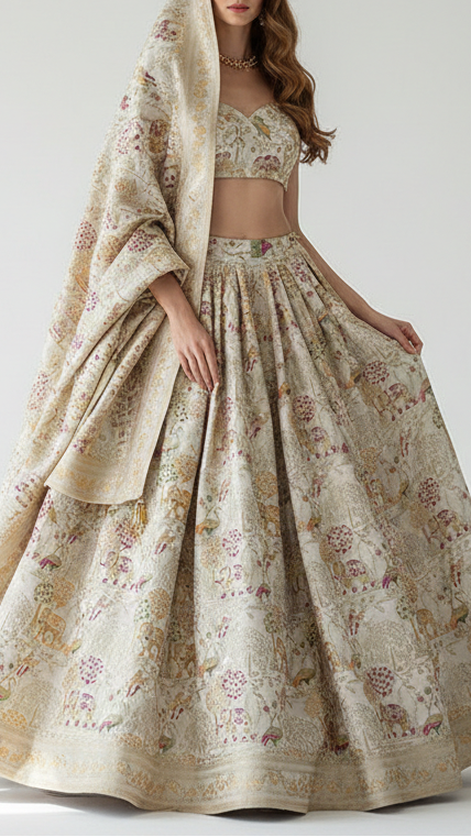 Perfect for lehenga, sarees, anarkalis, jackets, ethinic jumpsuits, etc. The rich look of this fabric is ideal for festive outfits, wedding attire & traditional wear.