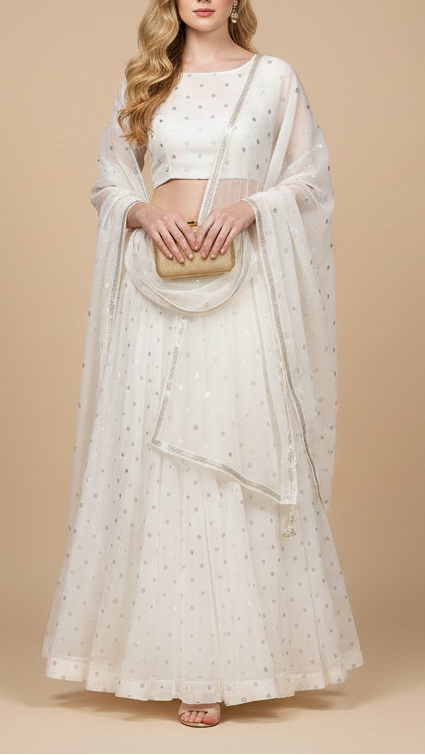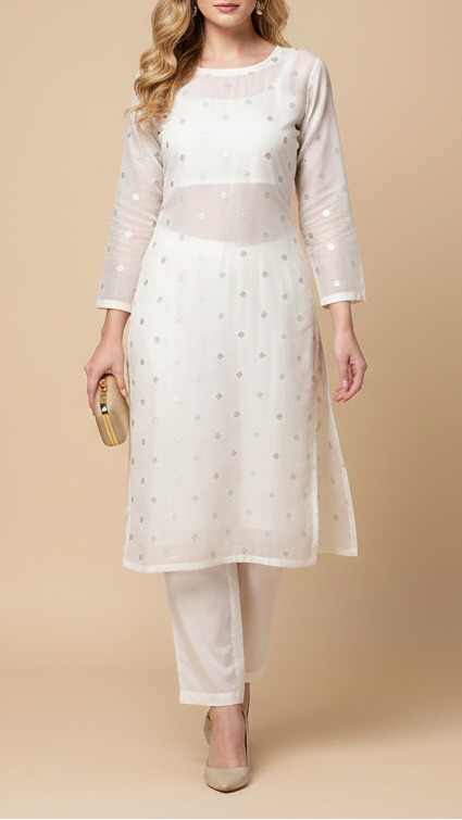 | Fabric Name | White Dyeable Chanderi Fabric With Dyeable Chanderi Fabric With All Over Buti Of Silver Zari Handloom |