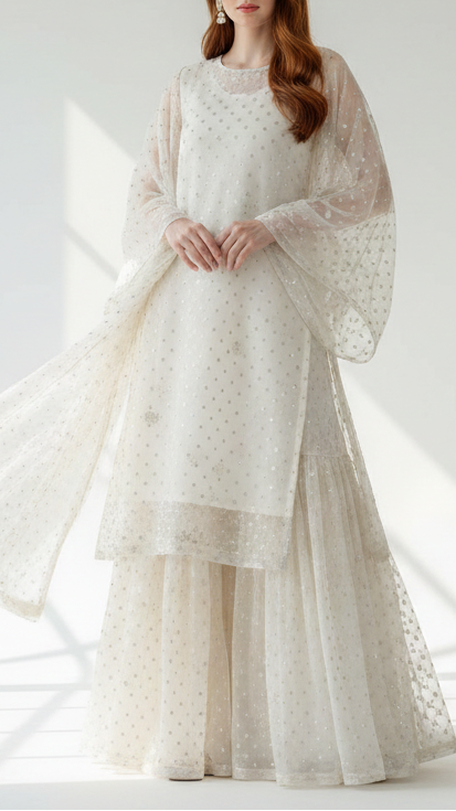 Perfect for creating sarees, suits, lehengas, dupattas, festive outfits, and bridal wear. This fabric beautifully enhances ethnic ensembles and is ideal for traditional functions, wedding attire, and luxurious statement pieces.