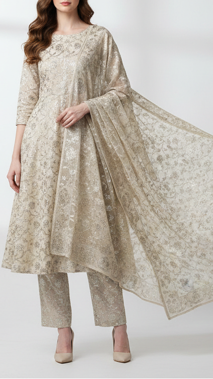 Perfect for creating sarees, suits, lehengas, dupattas, festive outfits, and bridal wear. This fabric beautifully enhances ethnic ensembles and is ideal for traditional functions, wedding attire, and luxurious statement pieces.