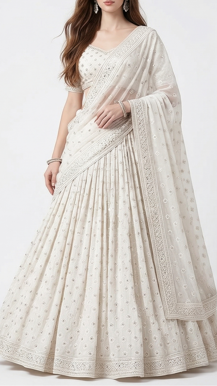 | Fabric Name | White Dyeable Cotton Fabric With Allover Sequins And Thread Work |