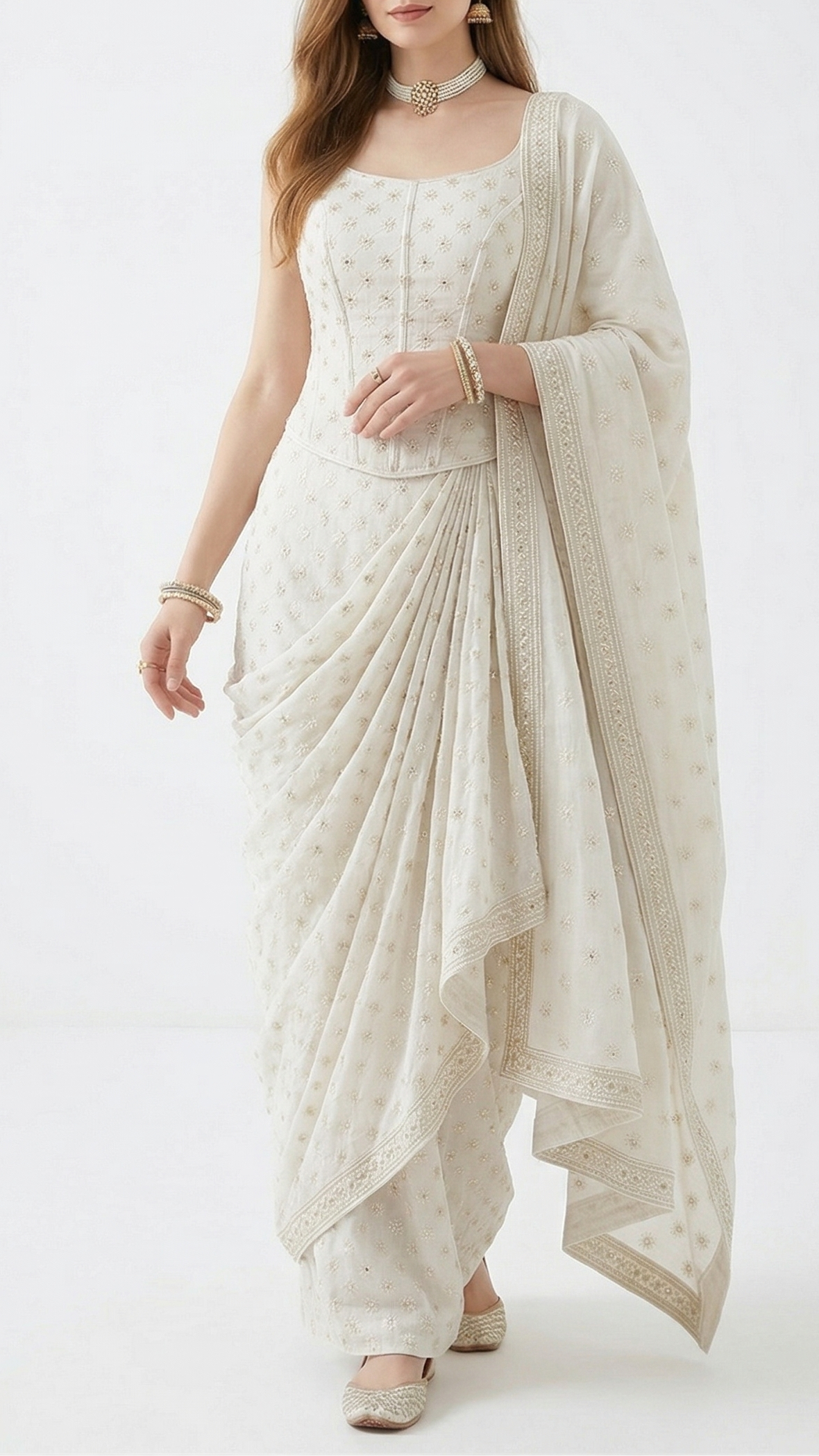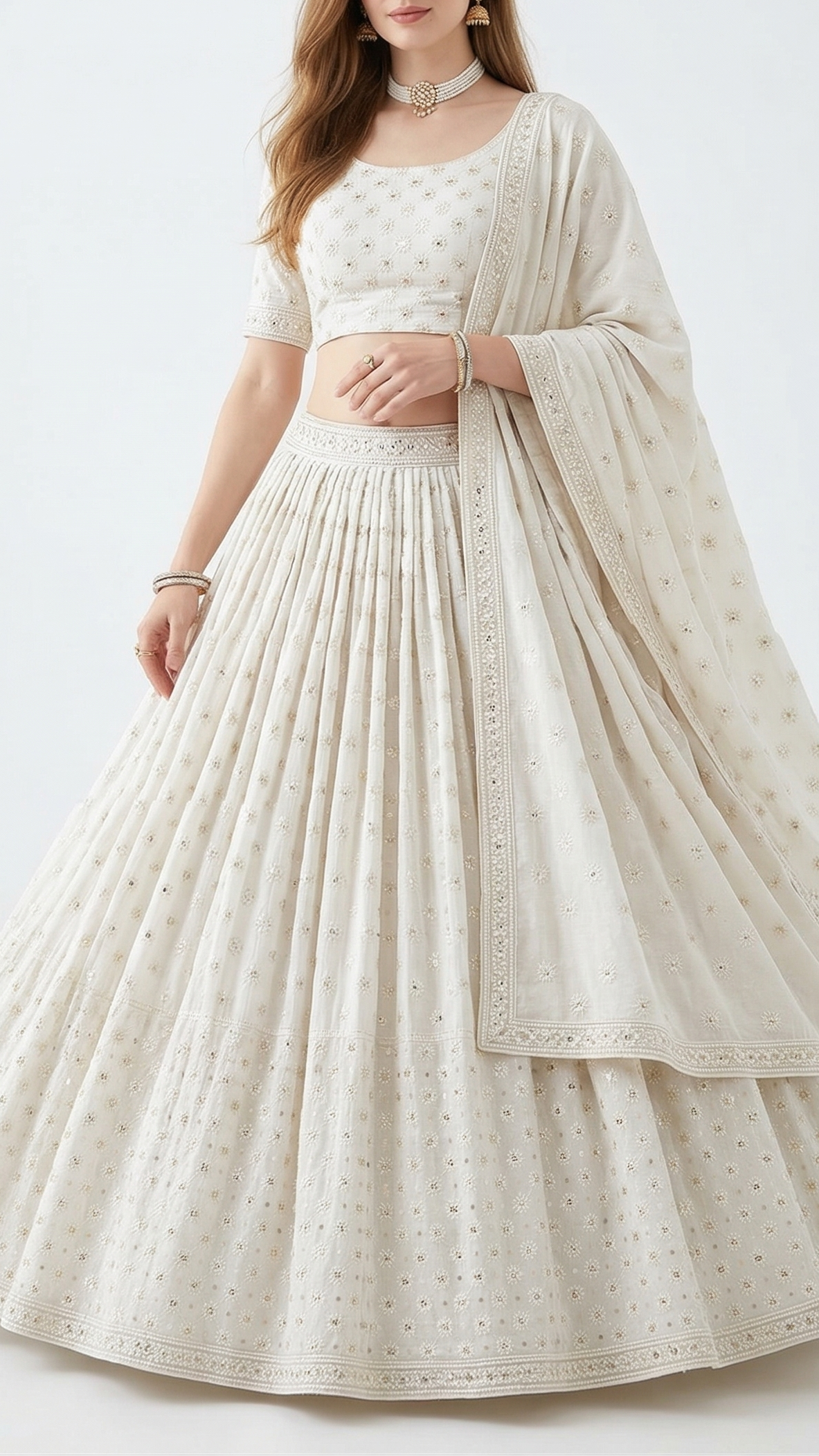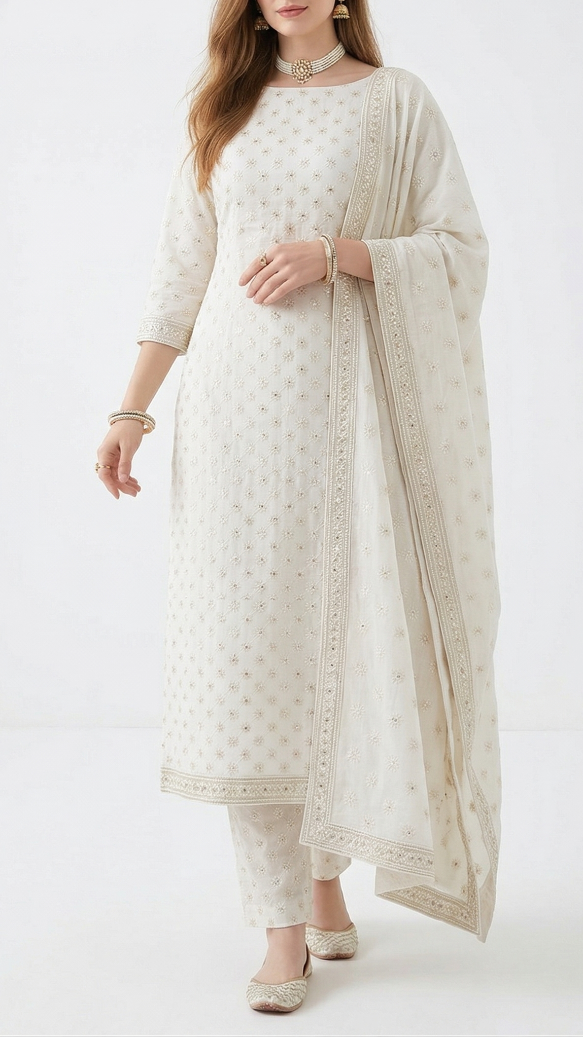 | Fabric Name | White Dyeable Cotton Fabric With Allover Sequins And Thread Work |
