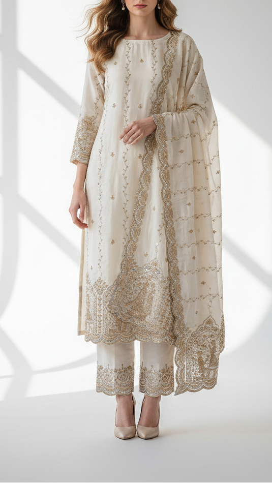 Should you require further assistance, please contact our dedicated customer care team. Provide them with your body dimensions and a sample image of the desired attire. Our experts will ensure you receive precise guidance tailored to your needs, reflecting our commitment to exceptional service and luxury.