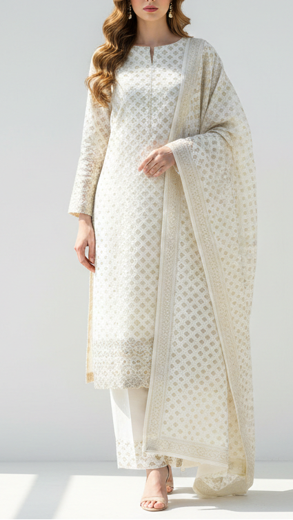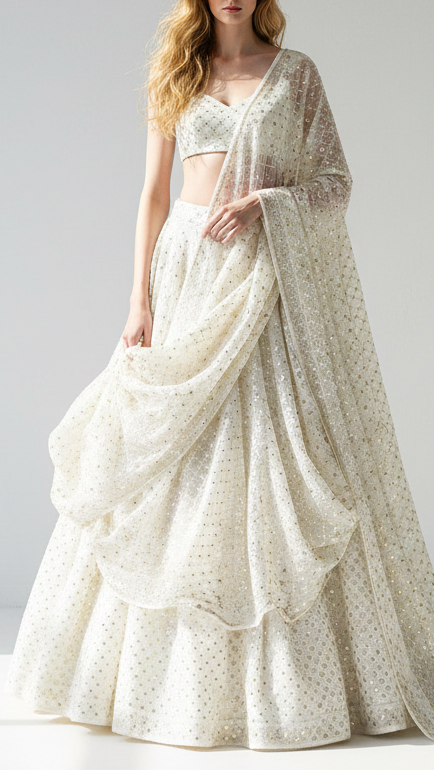 | Fabric Name | White Dyeable Georgette Fabric With All Over Thread And Sequins Work |