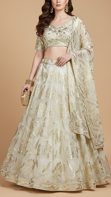 | Fabric Name | White Georgette Fabric With All Over Foil Work |