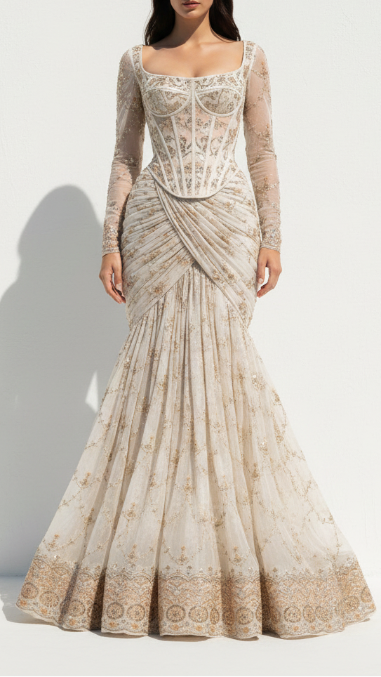 Should you require further assistance, please contact our dedicated customer care team. Provide them with your body dimensions and a sample image of the desired attire. Our experts will ensure you receive precise guidance tailored to your needs, reflecting our commitment to exceptional service and luxury.