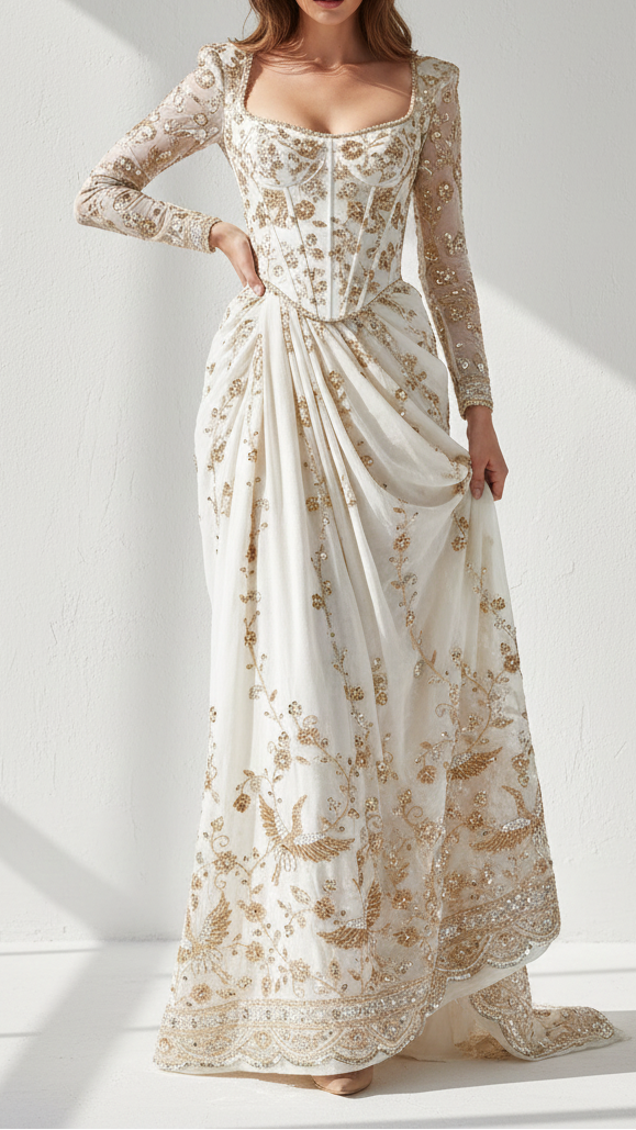 Should you require further assistance, please contact our dedicated customer care team. Provide them with your body dimensions and a sample image of the desired attire. Our experts will ensure you receive precise guidance tailored to your needs, reflecting our commitment to exceptional service and luxury.