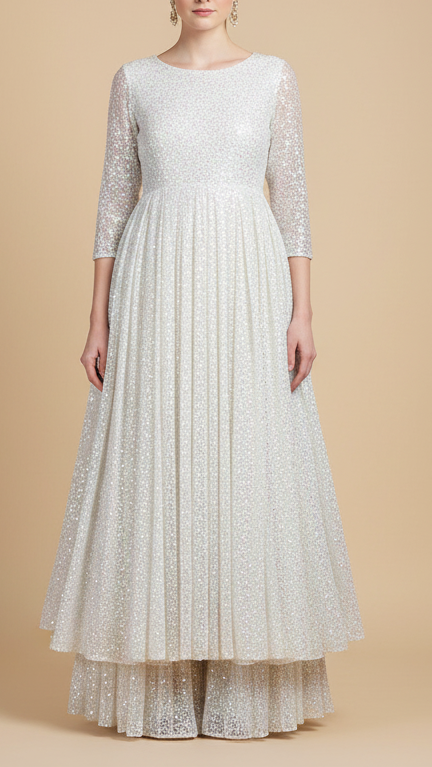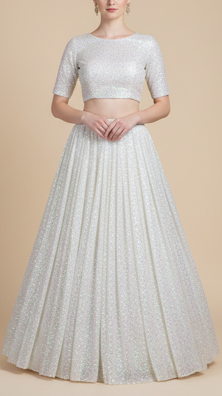 | Fabric Name | White Georgette Fabric With All Over Rainbow Sequins Work |