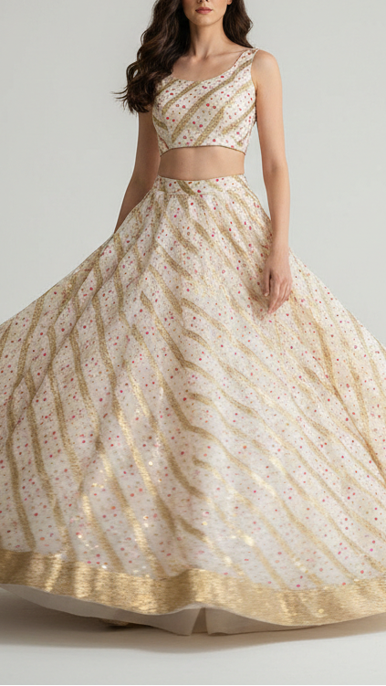 Perfect for lehenga, sarees, anarkalis, jackets, ethinic jumpsuits, sherwani, etc. The rich look of this fabric is ideal for festive outfits, wedding attire & traditional wear.